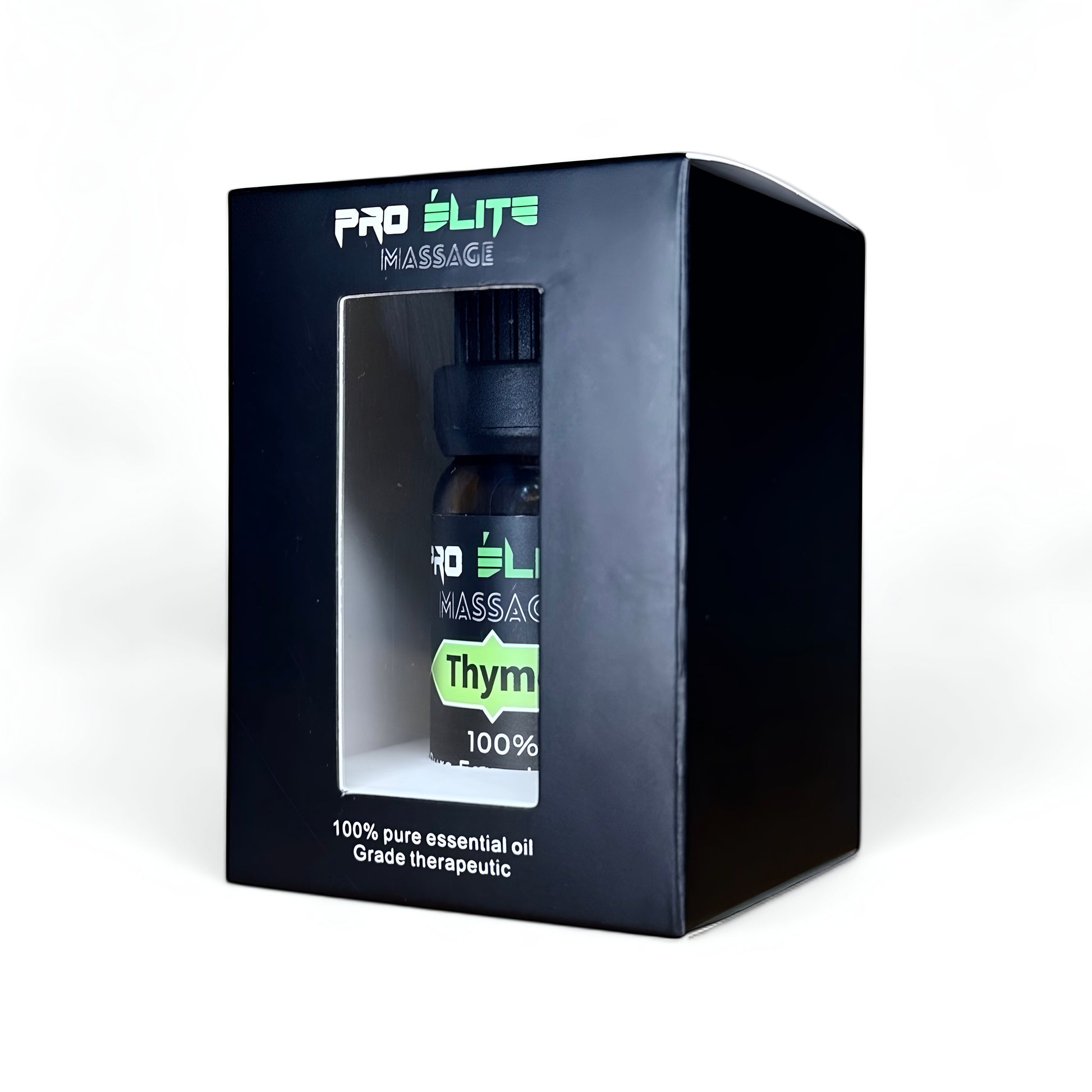 Thyme oil has a strong, herbal aroma known for its powerful purifying and energizing properties.